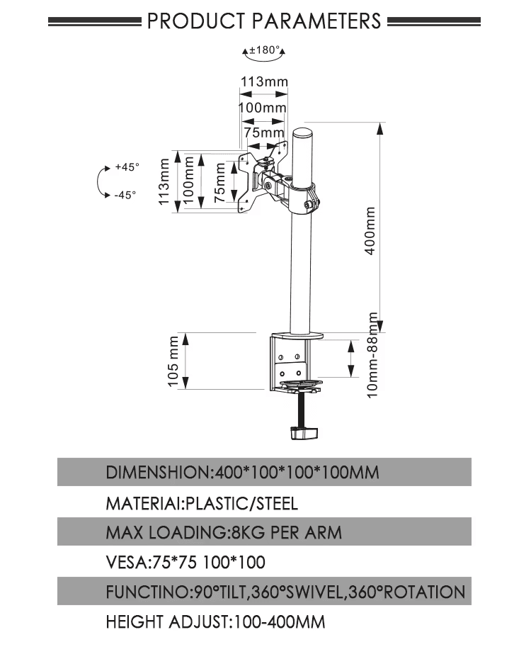 Support large monitors up to 32 inches with this heavy-duty arm. VESA compatible, robust construction. Enhance workspace efficiency and ergonomics.