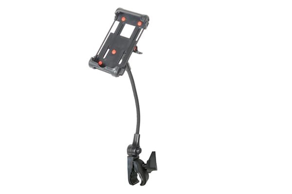 This flex phone holder for wheelchair use is designed to provide safe, hands-free access to your smartphone at all times. Featuring an adjustable gooseneck arm, it allows easy positioning for viewing, calling, or navigation without strain. The secure clamp fits most smartphones and holds them firmly in place, even during movement. A strong mounting system ensures stable attachment to wheelchair frames, armrests, or tubing. Built with durable materials for long-term use, this phone holder enhances independence, comfort, and convenience for daily activities, both indoors and outdoors.