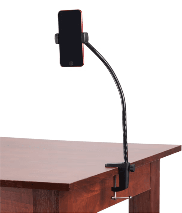 At the core of this product is the Adjustable gooseneck phone holder, engineered with a reinforced metal core that bends smoothly while maintaining its shape. You can twist, rotate, and angle the arm effortlessly to achieve the perfect viewing position. Once adjusted, it stays firmly in place without sagging, even during extended use. This makes it ideal for video conferencing, online learning, live streaming, or watching movies without interruption.
