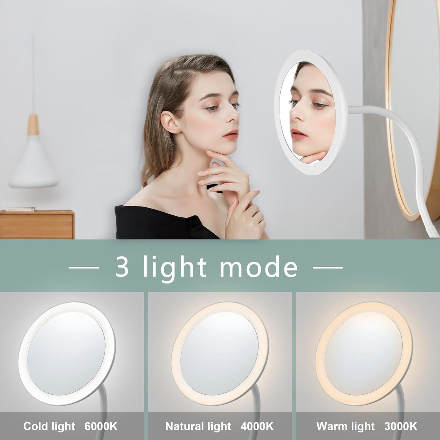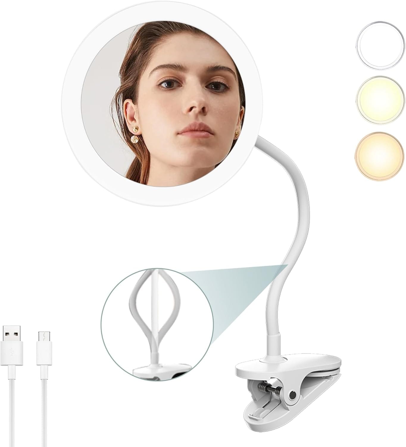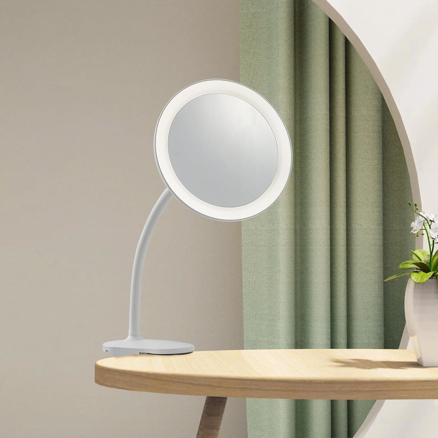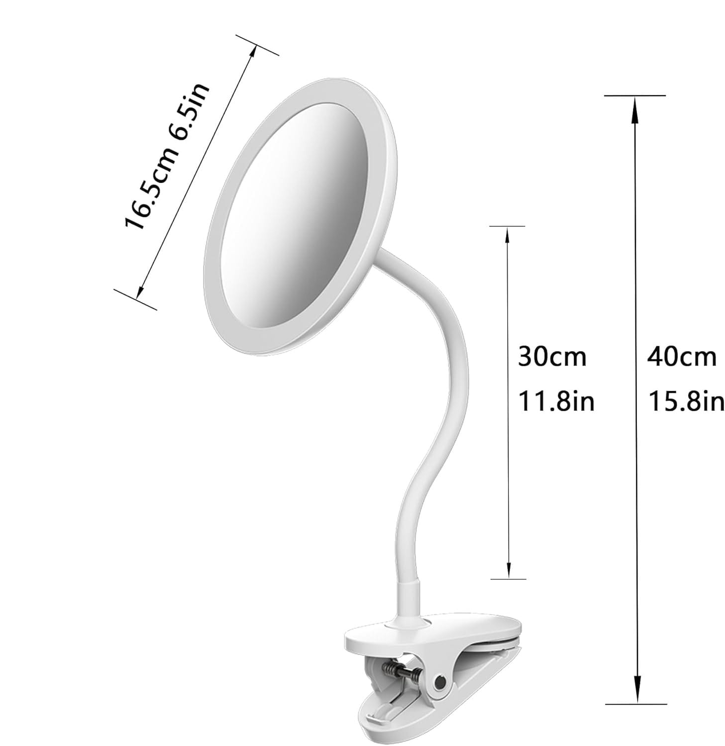 The design of the Flexible gooseneck clamp mirror allows users to bend and adjust the arm effortlessly to achieve the perfect viewing angle. The strong yet flexible gooseneck tube maintains its position after adjustment, ensuring reliable support during use. This flexibility is particularly useful for activities that require precision and close-up viewing, such as makeup application, skincare routines, crafting, or detailed repair work.